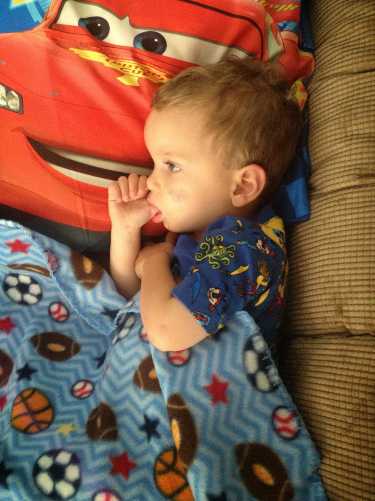 Poor little dude started feeling bad yesterday and it has only gotten worse today. The good news is I am getting extra snuggles! We are also mailing out his invitations for his party today, good thing we pushed his party back a week!
